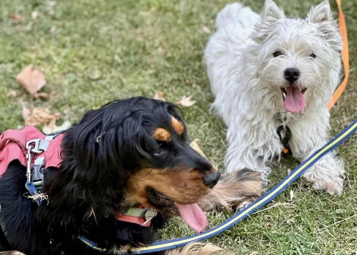 You’ve practised some ‘walking nicely’ exercises on a loose lead, and started to walk where your puppy can see other dogs (working on keeping the focus on you in the beginning). Now you’d like to progress beyond a three-second sniff hello and introduce them to some calm, friendly dogs. But what does healthy dog play look like?